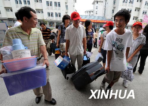 8月29日,东南大学的学生志愿者在迎接新同学。 [ 详细]