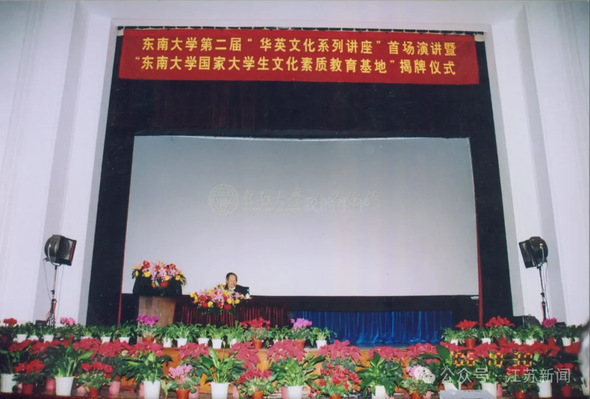 2006年10月30日,84岁高龄的杨先生再度莅临,出席“第二届华英文化系列讲座”。 他不仅欣然为“东南大学国家大学生文化素质教育基地”揭牌,更在承载着历史的东大大礼堂,为3000余名师生作了题为《我的生平》的精彩演讲。他以平实而深邃的语言,将个人命运与科学演进、国家发展紧密交织,展现了一位科学家的宏大视野与家国情怀。互动环节中,他耐心解答了学子们关于宇宙认知、大学教育、人文与科学的关联及前沿知识获取等诸多困惑,更结合自身经历传授治学心法:“做研究,要想取得事半功倍的效果,一定要有前瞻性,选择最有发展空间的领域。”