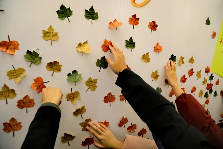 同学们在梧桐叶状便利贴上,写下自己对资助工作的真切心声——这些留言中,有温暖的反馈,也有恳切的建议,每一条都是受助学子回应东大关怀的“爱的回执单”。一句句朴实的话语,一张张梧桐叶便签,逐渐拼贴成一面“心声墙”。