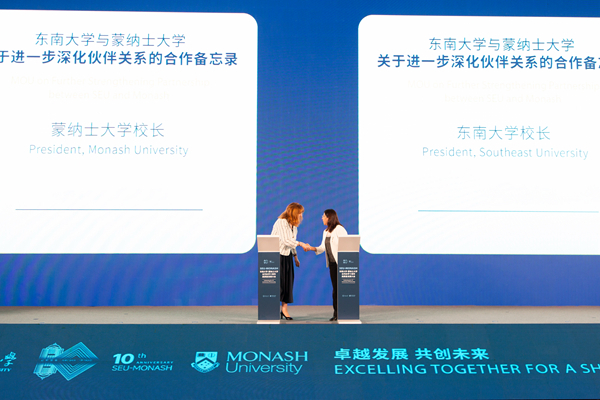 澳大利亚驻上海总领事戴德明表示,蒙纳士大学-东南大学合作办学十周年是中澳双边关系教育领域的一个里程碑。蒙纳士大学是第一所获得中国教育部许可、与东南大学合作在中国开设研究生院的外国大学,东蒙联合研究生院等机构展示了双方共同努力改善教育成果的实力,它们还极大增强了我们对彼此文化的理解,为世界一流研究的发展提供支持、推动创新,带来深远的影响。