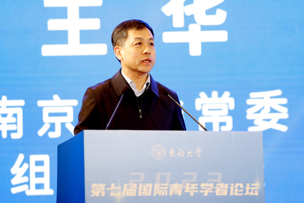 王华在致辞中代表南京市委、市政府向论坛的举办表示祝贺。他从古今交融的厚重感、崇文尊才的书卷气、兴业进取的活跃度和舒适宜居的幸福感四个维度向大家展示了南京之美。他表示,南京市比以往任何时候都更加重视人才、渴求人才,并拿出满满的诚意,焕新推出“真金白银”的政策,量身定制“才尽其用”的平台,努力营造“近悦远来”的生态。他邀请海内外青年人才走进南京、选择东大,共同书写不负时代、不负韶华的精彩篇章。