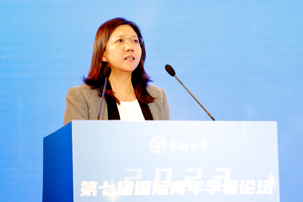 开幕式上,黄如代表学校致辞。她向参会的海内外青年学者表示欢迎和感谢。在报告中,黄如介绍了东南大学的发展历程和近期取得的重要办学成果。她指出,面向未来,东南大学着力建设有使命、有情怀、有格局、有品质的“四有”大学,实施教育、科技、人才一体化行动计划;对标国家需求,打造东大系列高峰与高原工程,开展有格局、有组织、有学术引领力的科研;围绕“强势工科、优势理科、精品文科、特色医科、提升新兴、强化交叉”的学科布局,以院系为基础,以学科交叉为抓手,打造面向未来、卓尔不群的世界一流学科体系,为青年人才孕育成长沃土。