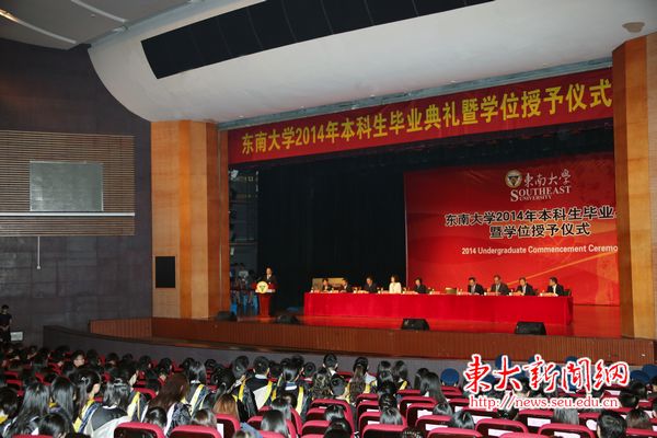 On the day of June 18th and morning of June 19th, three 2014 Undergraduate Commencement Ceremonies were held respectively in the auditorium of Sipailou Campus and the Jiaotingbiao Theatre of Jiulonghu Campus.