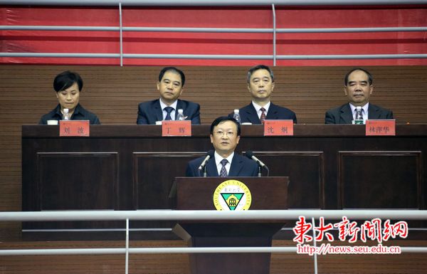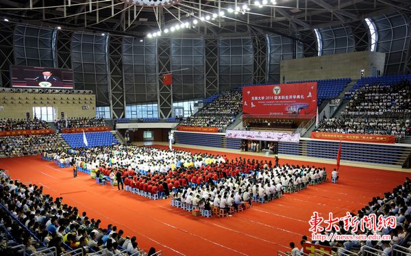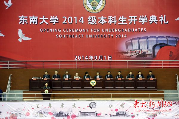 On the afternoon of September 1st, the Opening Ceremony for 2014 undergraduates of Southeast University was held in the gymnasium of Jiulonghu Campus. Nearly 4000 freshman students and a number of teachers attended the opening ceremony, including school leaders like Guo Guangyin, Yi Hong, Liu Jingnan, Lin Pinghua, Liu Bo, Zheng Jiamao, Shen Jiong, Wang Baoping, Ding Hui, Liu Hongjian; leaders of offices and departments. The degree awarding ceremony was hosted by Liu Bo, our Deputy Party Secretary and Vice President. Lv Zhitao, member of the Chinese Academy of Engineering, together with preventative professors of Chang Jiang Scholars Program” were invited to the ceremony.