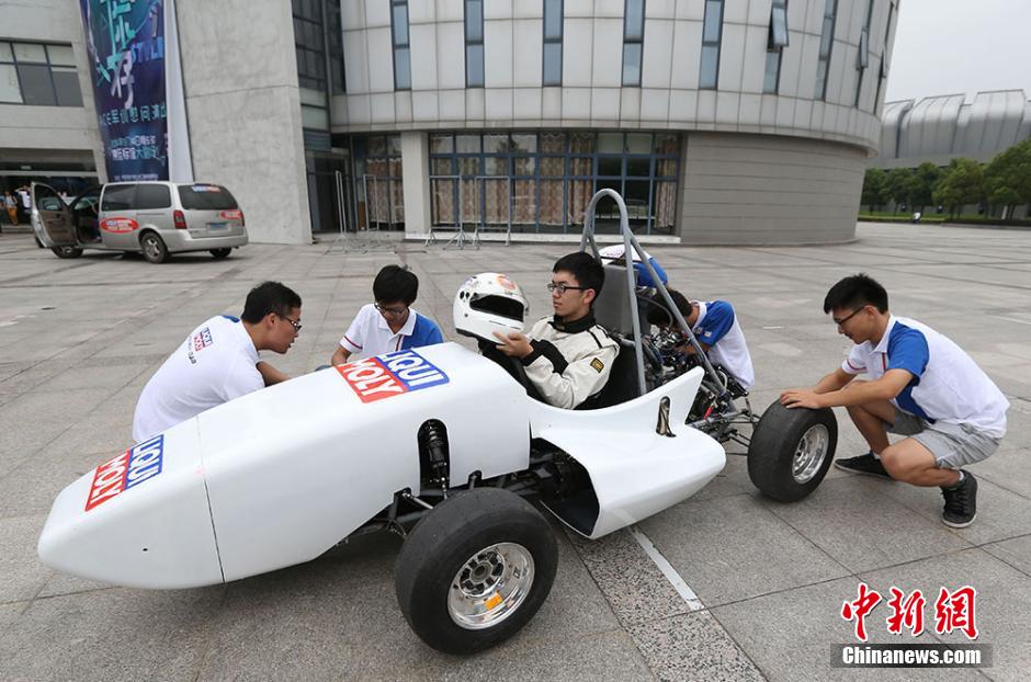 On September 11th, the Southeast University Moly Motorcade exhibited and debugged their racing car in Jiulonghu Campus. The racing car with the shape of a robust antelope is designed and produced by 65 students from with different professional backgrounds including mechanical engineering, electronic engineering, electrical engineering, etc.. With three months hard work, they have successfully constructed their dream formula car. Now, their baby racing car is going through a series of careful and comprehensive inspections, so as to be better prepared for the coming FSC (Formula Student China) in Xiangyang, Hubei.