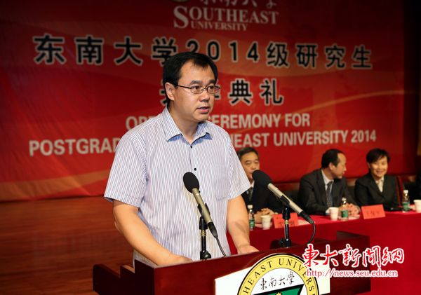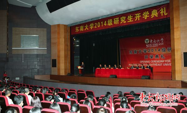 On the afternoon of September 4th, the Opening Ceremony for 2014 Postgraduates of Southeast University was held in Jiaotingbiao Theatre of Jiulonghu Campus. More than 4000 newly enrolled postgraduate students and a number of teachers attended the opening ceremony, including school leaders like Guo Guangyin, Yi Hong, Liu Jingnan, Lin Pinghua, Liu Bo, Zheng Jiamao, Shen Jiong, Wang Baoping, Ding Hui, Liu Hongjian; leaders of offices and departments. The degree awarding ceremony was hosted by Shen Jiong, our Vice President and Dean of the Graduate School.