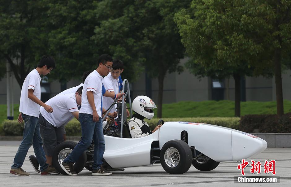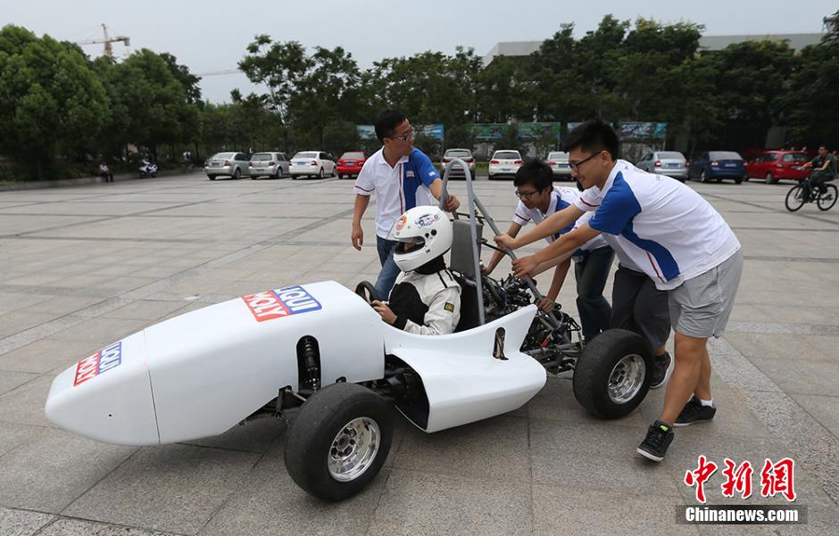 On September 11th, the Southeast University Moly Motorcade exhibited and debugged their racing car in Jiulonghu Campus. The racing car with the shape of a robust antelope is designed and produced by 65 students from with different professional backgrounds including mechanical engineering, electronic engineering, electrical engineering, etc.. With three months hard work, they have successfully constructed their dream formula car. Now, their baby racing car is going through a series of careful and comprehensive inspections, so as to be better prepared for the coming FSC (Formula Student China) in Xiangyang, Hubei.