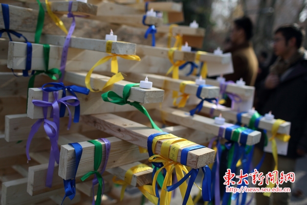 th, Southeast University held a ceremony in front of the auditorium of Sipailou Campus to mark China's first Nanjing Massacre National Memorial Day to memorialize victims slaughtered by Japanese aggressors in World War II. More than 200 teachers and students participated in the ceremony and expressed their mourning and reflection.