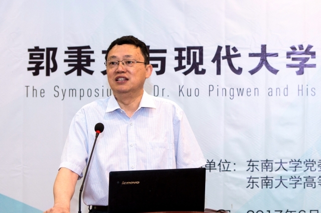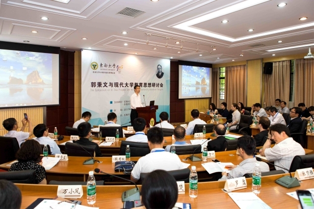 On June 2, four days ahead of the 115th anniversary of Southeast University, “the Conference of Guo Bingwen and Modern University Education” was held at Si Pailou campus of Southeast University . The conference was co-hosted by Publicity Department and the Institute of Higher Education. The delegation of relatives of Guo Bingwen led by Ms. Xu Zhiyun, the representative of relatives of National Central University’s first president Zhang Naiyan, Zhang Wenjia, doctor of Columbia University and the English writer of Guo Bingwen biography Ryan M.Allen, researcher of National Institute of Education Sciences Chu Zhaohui, dean of Institute of Education of Nanjing University, professor Wang Yunlai, professor Yu Zixia of Central China Normal University, professor Zhang Yaqun of Xia Men University, etc., were invited to the conference. The directors of publicity departments of over 30 universities including Peking University, leaders of Southeast University Zhang Guangjun, Zuo Wei, Ren Lijian, directors of relevant departments and faculties, representatives of teachers and students, etc., attended the conference.