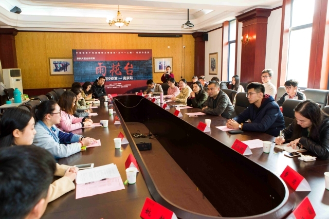 In the morning of the 8th, workers of Yu Hua Tai held a symposium “talk about Yu Hua Tai with the teachers and students of our university. Cui Zhong, the role-player of Yun Daiying, Lv Zecheng, the role-player of Xu Baoye and Chen Shuaihua, interpreter of Yuhuatai Martyrs Memorial, Cang Shujun, director of studio of Nanjing Daily Development Co., Ltd., attended the seminar, communicated with more than thirty teachers and students in our university face to face. In the meeting, representatives of teachers and students expressed how they had been impressed by the strong beliefs and noble sentiments of the Yuhua Martyrs by sharing their own experiences of social drama and opera, as well as their experiences of theatrical performances and hometown history.