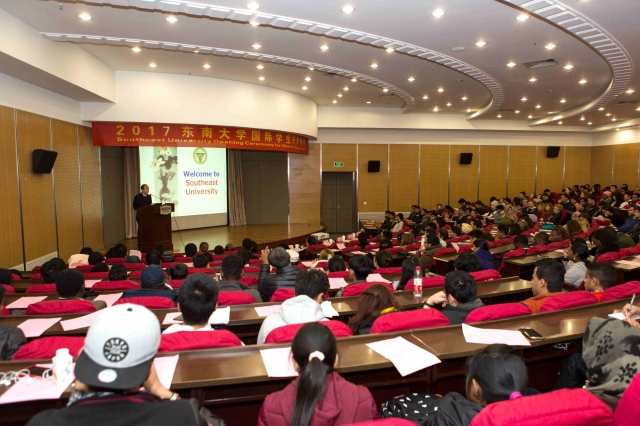 Nearly three hundreds international students were invited to the “2017 Opening Ceremony & Orientation” on the morning of November 21st 2017 in Yi Fu Lecture Hall, Southeast University (SEU). Prof. Wang Baoping (Executive Vice President of SEU), Prof. Ye Zhirui (Deputy Director of International Cooperation Department), Prof. Qiu Bin (Dean of College of Int’l Students (CIS)), Ms. Xu Jian (Associate Dean of CIS), Mr. Yang Liqian (Deputy Chief of Dept. of Exit and Entry Administration) and teachers of CIS also attended this ceremony.