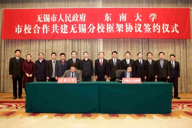 According to the framework agreement, Southeast University will givefull play to the advantages in talent training, scientific research, social services, cultural heritage and innovation, international exchange and cooperation, etc.. And it will offer strong technological, personnel, and intellectual support for the strategy of innovation-driven and industry-strengthen, and the development of economy and society of Wuxi. Wuxi will actively support Southeast University in speeding up the construction of internationally renowned high-level research universities, and provide support in policy, resource allocation, fund input, and mechanism protection. In the new round of cooperation inschool management, the Wuxi Branch of Southeast University will focus on the construction of national exemplary micro-electronics college, international unity college, international college of engineers and other secondary colleges,and a number of shared scientific and technological education public platforms combined with Wuxi's major industries, such as micro-nano platform.and municipal party secretary of Wuxi, Li Xiaomin, president of Southeast University Zhang Guangjun, deputy mayor of Wuxi Wang Jinjian, directors of municipal development and reform commission, education bureau, science and