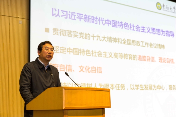 Secretary Zuo Wei pointed out in his speech that it is very necessary to conduct the discussion about education thoughts. The discussion is the furtherance of the results of undergraduate teaching assessment in the end of 2017, and is also an important part of the revision and improvement of SEU’s comprehensive reform plan. It will be the preparation for the revision of talent cultivation plan for undergraduates and post graduates. Secretary Zuo expatiated the significance of the discussion from perspectives of the development of Southeast University, Chinese higher education, and the whole country. He pointed out the instructional significance of grasping the background of the discussion. The educational thoughts discussion will answer the following questions: for whom we cultivate talents? What kind of talents we cultivate? And how to cultivate?