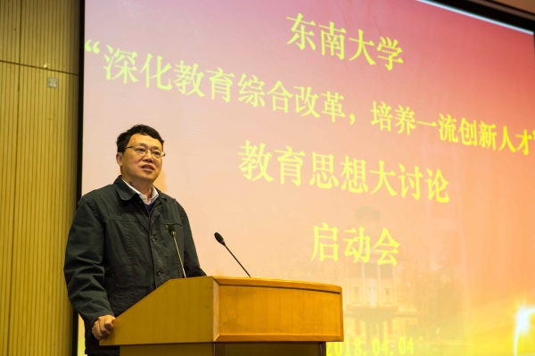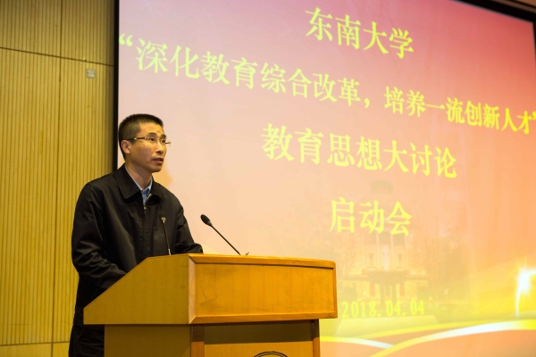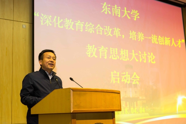 The education thoughts discussion will last for three months. It will center on the theme of “deepen comprehensive education reform, cultivate first-rate innovation talents”, focusing on topics of “concept, orientation, and aim of first-rate innovation talents cultivation”, “system mechanism and measures of first-rate innovation talents cultivation”, “the relationship between policy orientation of first-rate innovation talents cultivation and university comprehensive reform”, “the relationship between the ability structure of first-rate innovation talents and cultivating plan”, and “how to adapt teachers’ teaching ability to the cultivation of first-rate innovation talents”. The discussion will be organized by functional departments and schools of the university. It will be conducted from different levels and in different forms, including 4 report meetings, over 60 seminars, over 40 forums and more than 20 interacting activities between teachers and students. The organization mode including discussion organized by functional departments and schools and participated by university leaders, and discussion organized by schools and participated by functional departments. The latest development of discussion and detailed information will be published through special websites, new media matrix, special reports, special column on Journal of Southeast University, the atmosphere creation in campus, publicity of key junctures and typical characters, etc.. The university will accomplish the final report of the education thoughts discussion and convene the summing-up meeting before July 10, 2018