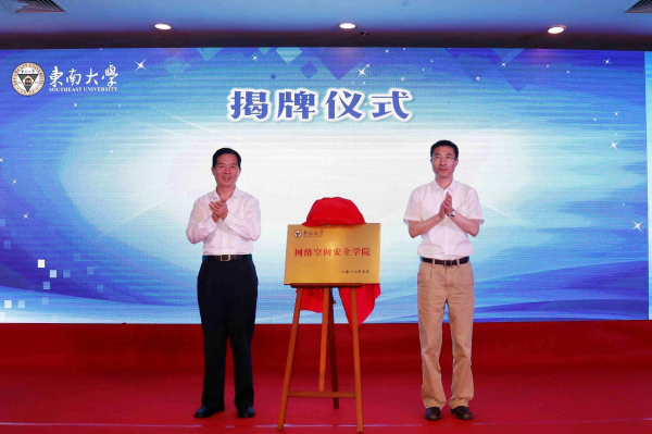 On the morning of May 20, as the first batch of demonstration project of constructing the first-rate cyberspace security colleges in China, the School of Cyberspace Security of Southeast University was officially unveiled at Jiulonghu Campus. Li Shigui, Member of the Standing Committee of Nanjing Municipal Committee and CPC Secretary of Jiangning District, Bao Feng, Deputy Director of the Cyberspace Administration Office of Jiangsu Provincial Party Committee, Zhang Guangjun, President of Southeast University, Managing Vice President Wang Baoping, Vice Presidents Wu Gang and Jin Baosheng, Academician Yu Quan, Dean of the School of Cyberspace Security, principals from fraternal schools and cooperation enterprises, principals of related departments of Southeast University as well as representatives of teachers and students attended the opening ceremony, which was presided over by Managing Vice President Wang Baoping.