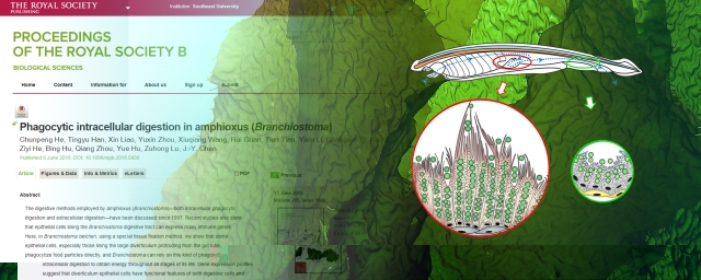 Proceedings of the Royal Society B reported online the research paper titled Phagocytic Intracellular Digestion in Amphioxus (Branchiostoma) composed by Professor Lu Zuhong and his students He Chunpeng et al. from the School of Biological Sciences & Medical Engineering, SEU with unprecedentedly long space (10 pages). This paper was also commented by Nature in the form of Highlight.