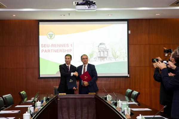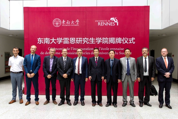 It is reported that Southeast University and Université de Rennes 1 started their cooperation as early as in 1989. In 2006, both parties jointly established Sino-French Biomedical Information Research Centre. For the International Cooperation United Laboratory of Information Display and Visualization as established in 2016, Université de Rennes 1 is also the major partner institution. Thanks to the exchanges and cooperation for almost 30 years, both parties have formed sound cooperative relationship of supplementation in respect of scientific research and teaching, moreover, fruitful cooperation results have been obtained. At the same time, the cooperation between the two universities has been highly recognized by the governments of both countries. Professor Yi Hong, the former president of Southeast University, was awarded an honorary doctorate by Université de Rennes 1. Two professors from Southeast University have successively received the medal of “Palm Education Knight” from the French government. Meanwhile, two professors from Université de Rennes 1 have been selected into the “Thousand Talents Plan” initiated by the Chinese government, and another professor was awarded the “Friendship Award” by the Chinese government. In this context, based on the long-term cooperation and common aspiration of cooperation, and under the approval and guidance of the education departments of China and France, Rennes Graduate School of Southeast University was officially inaugurated upon preparation for more than two years, which has initiated a new chapter of cooperation between the two universities.
