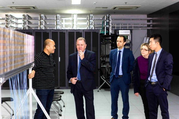After the talks, the delegation arrived at the Wireless Valley to visit the State Key Laboratory for Mobile Communications of Southeast University and carried out cordial exchanges with relevant teacher representatives of the laboratory.