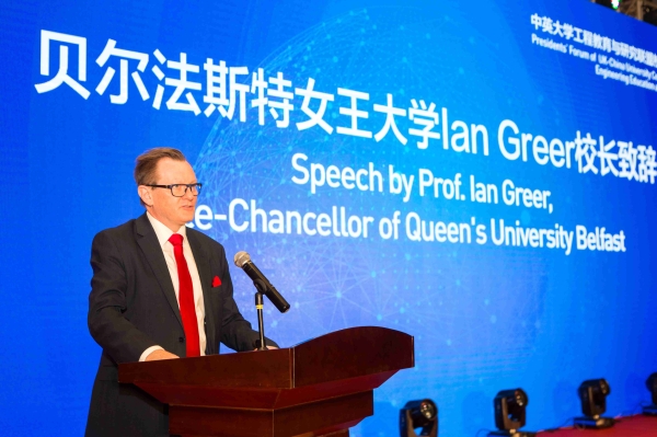 In the speech addressed by President Ian Greer from Queen's University Belfast, he stated that the Sino-British Consortium on Engineering Education and Research that has functioned as a bridge between Chinese and British academic circles could further promote the development and cooperation between China and the UK in higher education. President Ian Greer said that the talent would be the driving force behind the future development and also the key to sustainable development for both countries. Thanks to this platform, both Chinese and British universities can explore new ways of talent development with joint efforts in the 21st century. President Ian Greer also stated that his university would focus on cultivating engineering leaders in the new era by virtue of the Future Engineer Leadership and Innovation Academy program. Sino-British universities would commit themselves to attracting more outstanding doctoral candidates in the course of technological exchanges and experience communication so as to produce higher quality publications, work out higher-level papers, and enhance the promotion and application of innovative viewpoints. President Ian Greer said that the consortium highly complied with the Made in China 2025 program. He believed that universities of both countries, thought the consortium, particularly the implementation of the “Innovation Institute Program”, would usher the golden age of development together.