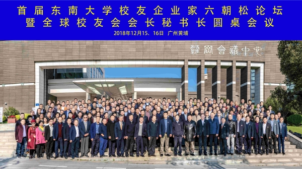 On December 15 and 16, Liuchaosong Forum of Global Alumni Entrepreneurs and the Round Table Meeting of Chairmen and Secretary-generals of Global Alumni Association, hosted by Southeast University Alumni Council, undertaken by Guangdong Provincial Southeast University Alumni Association and co-organized by the Investment Promotion Bureau of Guangzhou Development Zone, were convened in Guangzhou. Zhang Guangjun, Chairman of Southeast University Alumni Council and President of Southeast University, Huang Dawei, Executive Vice Chairman of the Alumni Council and Vice President of Southeast University, relevant comrades from the President’s Office, the Development Committee, the Alumni Council and the University Science Park joined together with over 200 excellent alumni of Southeast University including principals of almost 20 listed companies, industrial leaders and representatives of unicorn companies, chairmen, secretary-generals and representatives of more than 30 provincial and municipal alumni associations, the alumni associations in Zhuhai, Macao, Hongkong, the United States, Britain, Singapore and Australia, etc.. This conference, based on the principle of “gratitude, friendship, sharing and mutual assistance”, has provided an excellent opportunity to all members for expressing their feelings about their alma mater and discussing cooperation.