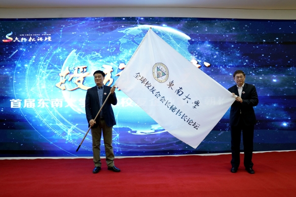 Vice-President Huang Dawei, on behalf of Southeast University, granted the “Liuchaosong Forum” and the “Meeting of Chairmen and Secretary-generals of Global Alumni Associations” flag to the organizer of this conference and Guangdong Provincial Southeast University Alumni Association.