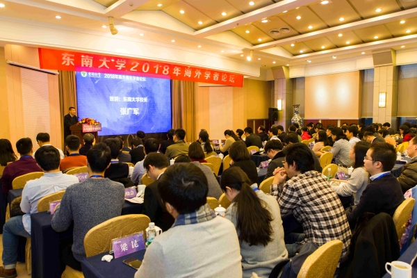 “2018 Overseas Young Scholars Forum” was convened at Sipailou Campus of Southeast University on December 25. Near 150 assistant professors and postdoctoral fellows from renowned overseas universities in 22 countries and regions including the United States, Britain, Germany and Australia, etc. participated in the forum, covering more than 80 disciplines and 23 departments of Southeast University. The majority participants came from world-top universities such as Harvard University, Stanford University, Oxford University, Cambridge University and Sydney University, etc.. The forum lasted for 3 days and was composed 1 one main forum and 22 sub-forums to exchange academic ideas and discuss cooperation on the basis of fellowship and sharing.