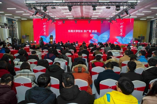At the meeting, Zhang Jiwen, Managing Vice President of Wuxi Campus, reported on the overall situation of the 30th anniversary of Southeast University, Wuxi. He reviewed the development process and achievements made in the past three decades, and depicted the thought and path of future development surrounding the new round of agreement on cooperation between the city and the school. Zhao Yang, a 2016 graduate student majoring in integrated circuit engineering from the Microelectronics College, spoke on behalf of the on-campus students. He said that the students of Southeast University with high sense of social responsibility would endeavor to realize powerful Chinese core. Professor Li Bing, spoke as a teacher representative, would continue to adhere to the pragmatic style of Southeast University, propose suggestions and make contributions to the branch campus in a more active manner as a teacher.