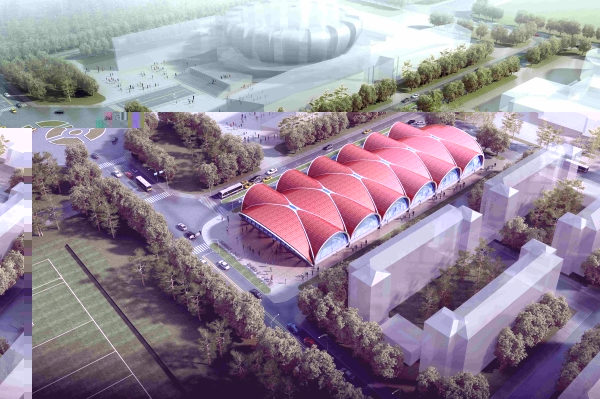 The natatorium adopts the curved shape, which well coordinates with the swimming wave. Meanwhile, the internal structure adopts the reinforced concrete arch structure, which ingeniously combines the architectural shape, internal space and structural form together. It is deemed as an innovative landmark building that can reflect the disciplinary characteristics of civil engineering and architecture of Southeast University.