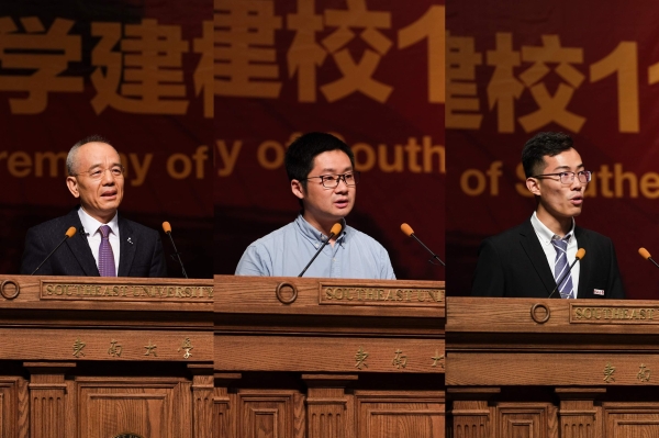 At the ceremony, Mr. Xu Shaochun delivered a speech as the alumni representative. Prof. Yang Jun, as the teachers’ representative from the School of Automation and the youth top-notch personnel involved in the fourth batch of national “10,000 Talents Program”, student Yu Lugang, as the students’ representative from the School of Civil Engineering also addressed the ceremony respectively.