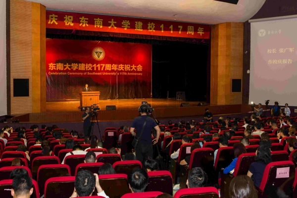 In the morning of June 6, the Celebration Ceremony of Southeast University’s 117th Anniversary was convened at Jiaotingbiao Hall, Jiulonghu Campus, Southeast University. All leaders on campus, former leaders, Mr. Xu Shaochun, excellent alumnus of Southeast University, the founder of Kingdee international software group, Chairman of the board of directors and CEO of the company, principals of the alumni associations at various places, representatives of the enterprises who have set scholarships or subsidies, principals in charge of various departments, divisions and offices, the party and political leaders of all schools and departments, representatives of various democratic parties, overseas Chinese associations, teachers and students attended the ceremony. The ceremony was presided over by Zuo Wei, Secretary of the school’s Party committee.