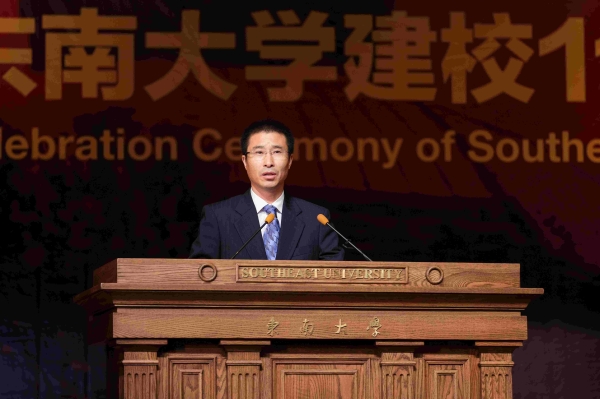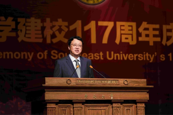 President Zhang Guangjun delivered a celebration report titled “To Undertake the Mission of the Times Bravely and Realize the Dream of Constructing the First-class University. Meanwhile, he also extended festive greetings and sincere gratitude to all teachers and students, retired leaders and comrades, alumni both at home and abroad, and friends from all walks of life. He briefly reviewed the history of struggling made by people from Southeast University in the past 117 years, especially in the early days of the founding of the school, the beginning of the new China and the tide of reform and opening up; in addition, he also summed up the main achievements made in the past year, especially the persistence in socialism as the direction of school running, the continuously deepened reform in an overall manner through reshaping the goals, deepening the reform, stimulating the vitality and leading the development so as to accelerate and upgrade the connotations of constructing a “double first-class” university. In addition, the university has also achieved new breakthroughs in promoting the talent cultivating, the faculty team construction, scientific researches, discipline construction and international cooperation, etc..