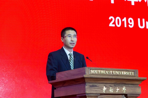 President Zhang Guangjun first made a speech titled “Persist in theOriginal Aspiration and Strive to the Perfection”, expressed his congratulations and best wishes to 2019 undergraduate graduates, extended his welcome and gratitude to their family members and friends as well as alumni. Zhang Guangjun said that the students have met a better self and composed the beautiful story of Southeast University with youth and struggling during such a beautiful and short period of campus time. They have established the model of strugglingas the direct participants and important witnesses of Southeast University’s “1-10-100” dream. On behalf of the school, President Zhang also appreciated the students for their sharing of weal or woe with the school and their contributions to the school’s “first-class university” construction. Zhang Guangjun pointed out that the graduation would be a new starting point for youth and a fork in life. The road of struggling in the future is by no means a smooth road, but a journey full of hardships and challenges to achieve great dreams. He said that General Secretary Xi Jinping pointed out at the 100th anniversary of the May 4th Movement that “striving to the perfection should be the unchanging personality pursuit of the Chinese nation”. The 117-year development history of Southeast University has exactly witnessed that the Southeast University people, one generation after generation, have always persisted in the initial aspiration of “becoming renowned with science and serving the country with talents” and the school motto of “striving to the perfection”. He also expected the students to persist in the initial aspiration and strive to the perfection as the same as the predecessors, whenever and wherever. In order to enable the students to better inherit Southeast University’s spirit of “striving to the perfection” and open the infinite journey of struggling, Zhang Guangjun put forward three expectations: first of all, he expected that the students could adhere to the mission of the times in an endless manner, establish the great mission of communism, be determined to take root in the people, contribute to the country, the national rejuvenation and construction with youth and struggling infinitely. Secondly, he expected that the students could firmly insist in innovation and endless development and march towards the center of the world stage bravely. Efforts should be made to enable innovation to be driving force of the youth voyage and master excellent innovation capacity voluntarily and steadfastly so as to promote scientific and technological progress. Thirdly, he expected the students could persist in endless struggling, transform the initial intention to the courage and energy of struggling, persist in the practice of prospering the country steadfastly, and never fear the dangers and march ahead in the process of realizing Chinese dream. Finally, President Zhang expected the students to work with the alma mater to build the “SoutheastUniversity’s Dream” of constructing a world-class university with Chinese characteristics and compose a brilliant chapter of Southeast University people for the great rejuvenation of the Chinese nation and the progress of human civilization.