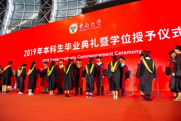 In the afternoon of June 21, 2019 Undergraduate Commencement and Academic Degree Conferring Ceremony of Southeast University was convened at Jiulonghu Campus of Southeast University. School leaders including Zuo Wei, Zhang Guangjun, Wang Baoping, Zheng Jiamao, Huang Dawei, Jin Baosheng, principals from relevant functional departments and colleges (departments), excellent alumni representatives, teachers’ representatives, representatives of the graduates’ relatives and friends, and all 2019 undergraduates attended the commencement. The commencement was presided over by Zheng Jiamao, CPC Vice Secretary of Southeast University. The commencement was unveiled with the song “Farewell” sung by the university chorus.