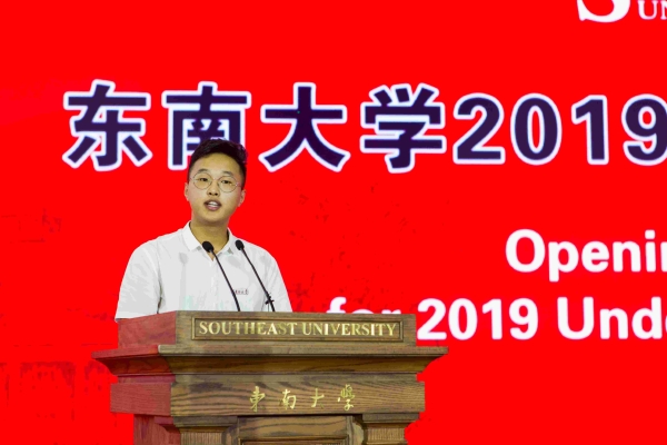 Prof. Wen Guanghui, an 80’s doctoral tutor from the School of Mathematics, the winner of national outstanding youth foundation and a globally highly-cited scientist in the field of engineering, spoke as the teachers’ representative. He shared his insights on the topic that “what kind of person he/she is to be” and encouraged the freshmen to be a Southeast University person highlighting patriotism, innovation and incorporating the spirit of “striving for perfection” into the blood. The students’ representative Wang Shuo from 2017 Guo Bingwen Class and the freshmen representative Zhang Youhan from the engineering experimental class (the category of automation and electrical measurement and control) also spoke at the opening ceremony.