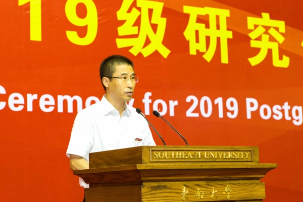 [Southeast University News Network, September 6] (reporter: Wu Hanyu; photographer: Hang Tian) On the morning of September 6, the Opening Ceremony for 2019 Postgraduates of Southeast University was convened at the Gymnasium of Jiulonghu Campus. School leaders including Zuo Wei, Zhang Guangjun, Zheng Jiamao, Ren Lijian, Ding Hui, Huang Dawei, Jin Baosheng, Liu Pan, responsible comrades of the departments concerned, the teacher’s representative, the student’s representative on campus and the fresh postgraduates attended the ceremony. The ceremony was presided over by Jin Baosheng, Vice President and Dean of the Graduate School.
