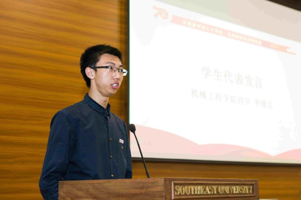 Prof. Song Ai’guo, the teacher’s representation, Dean of the School of Instrument Science and Engineering, depicted the mission and responsibility, dreams and struggles of being a teacher; emphasized that the teachers should highlight good moral qualities and concern the students with profound knowledge and generous love; the teachers should continuously improve their academic and scientific research capabilities, dare to innovate and strive for progress. Student Li Bowen, the student’s representative from the School of Mechanical Engineering expressed his appreciations and respect to all the teachers on behalf of all the students, and also extended his festival greetings.