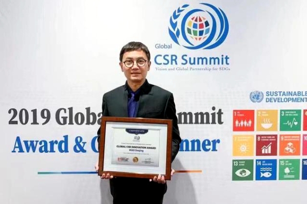 [Southeast University News Network, Oct. 16] On Oct. 15 EDT, Mao Daqing, the founder of Urwork and an alumnus of Southeast University, was invited to attend 2019 Global CSR Summit in New York at the United Nations and was granted the “Global CSR Innovation Award” by UN. This award was established to recognize the companies and individuals around the world who have included the “incorporate corporate social responsibility into their core business strategy so as to accelerate the progress of UN’s 2030 Sustainable Development Goals”.