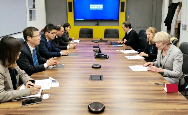 During the visit to the University of Manchester, President Sir Nancy Rothwell received the delegation of PresidentZhang Guangjun. During the talks between both parties, Zhang Guangjun introduced the historical evolution and disciplinary characteristics of Southeast University to Nancy Rothwell. As President Zhang introduced, upon 117-year development, Southeast University has always been adhering to the school-running concept of openness and has undertaken the important mission of serving the country and the society. Facing the future, Zhang Guangjun put forward two suggestions on the cooperation between the two universities: first of all, we should continue to expand and deepen the student exchanges. The mutual visit of students from both parties will be conducive to deepen the mutual understanding of each other's culture, cultivate their innovation and global vision, and provide opportunities for their participation in major national projects; secondly, it is conducive to deepen scientific research and cooperation. Under the support of relevant Chinese local governments, we can jointly apply for high-level joint research centers to carry out targeted scientific innovation and technical transfer researches, and thus to solve many challenges confronted by human society in the course of economic development. Nancy Rothwell completely agreed with Zhang Guangjun’s suggestions and indicated his willingness to conduct substantial cooperation with Southeast University as soon as possible in terms of joint cultivation of graduate students, summer school, joint scientific researches, innovation and achievement transformation, and also expressed the interest in joining Sino-British University Engineering Education and Research Alliance based on the future cooperation between both parties. The delegation also visited the National Graphene Research Center and the Photonics Science Research Center, conducted fruitful discussions on cooperation with Prof. Martin Schröder, Vice President and Dean of the Institute of Science and Technology, Prof. Wang Zhongdong, Deputy Dean in charge of international affairs of the Institute of Science and Technology. Both parties agreed to explore and try joint cultivation of interdisciplinary talents in the future.