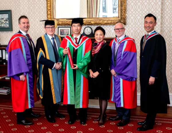 In the morning of Dec. 12, Zhang Guangjun attended the Winter Graduation Ceremony and Honorary Doctoral Awarding Ceremony of Queen’s University of Belfast. As authorized by the school’s council, Prof. Ian Greer, President of the Queen’s University of Belfast, awarded Zhang Guangjun an honorary doctorate of science in recognition of his outstanding achievements in engineering education and scientific research, as well as his contributions to international exchanges and cooperation in Sino-British education. It is reported that the honorary doctorate degree of Queen’s University of Belfast aims at recognizing outstanding scholars, scientists or well-known politicians and social activists for their outstanding achievements in social development and human progress such as academic, economic, educational, scientific, cultural and health contribution, etc.. Before the ceremony, Zhang Guangjun also talked with Ian Greer. Both parties exchanged views on the Alliance’s future development, especially in respect of the expansion of talent cultivation and the deepening of scientific research cooperation.