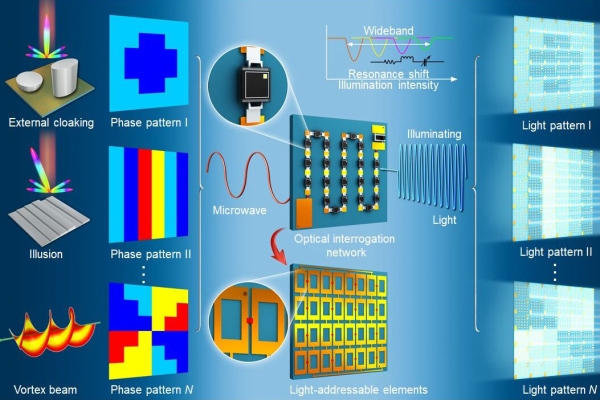 [Southeast University News Network, March 17] (Correspondents: Zhang Xin’ge, Sun Wei) Recently, the research team of Academician Cui Tiejun from Southeast University cooperated with Professor Qiu Chengweifrom National University of Singapore and Professor Luo Yu from Singapore Nanyang Technological University, proposed, designed and implemented a light-driven digital coding hypersurface that can program electromagnetic functions. On this light-driven digital metasurface platform, the reflected phase response of microwaves can be adjusted in real time by the intensity of visible lights, which has solved the problem of crosstalk between microwave signals and DC signals caused by the previous multi-channel electronically controlled metasurfaces that required a large number of complex physical wires for connection; meanwhile, the non-contact remote programmable control system has laid down foundation for the development of a highly integrated remote programmable hypersurface system. Relevant research results were published in “Nature Electronics” with the title of “An optically driven digital metasurface for programming electromagnetic functions”. Corresponding authors include Professor Jiang Weixiang, Professor Cui Tiejun and Professor Qiu Chengwei from the National University of Singapore, and the first author is Zhang Xin’ge, a doctoral student of Southeast University.