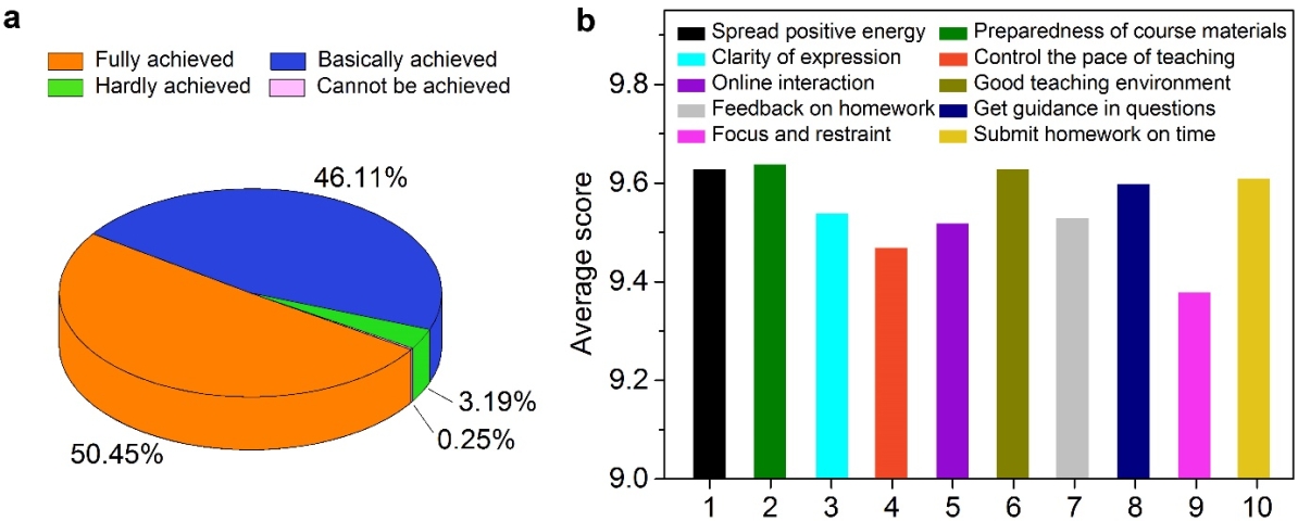 a. Achievement of teaching goals; b. Online teaching quality score (each individual item has a full score of 10 points).