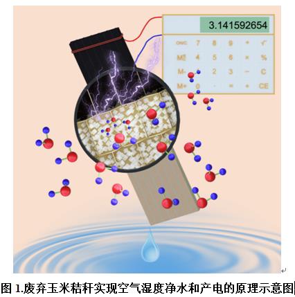 Fig. 1: Schematic Diagram of Water Purification and Electricity Generation from Air Humidity by WasteCornstalks