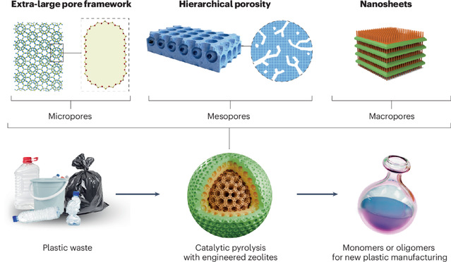 Recently, the Green Energy team led by Prof. Xiao Rui and Prof. Zhang Huiyan from the School of Energy and Environment, SEU published a comment article titled “Designing zeolite catalysts for chemical recycling of plastics” in the prestigious academic journal Nature Reviews Materials. In this article, they addressed the increasingly severe global issue of efficient recycling and high-value utilization of plastic waste and other polymeric organic solid wastes. The team proposed a multiscale cooperative structural engineering strategy to construct more efficient mass transport pathways in zeolite catalysts. This approach aims to maximize the utilization of internal active sites and achieve efficient and targeted thermal conversion of organic solid wastes.