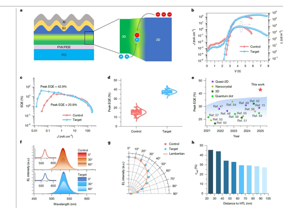 Researchers led by Professor Lu Haizhou from the School of Integrated Circuits at Southeast University, in collaboration with Professor Ji Wenyu's group from Jilin University, Professor Tang Aiwei's group from Beijing Jiaotong University, Professor Yang Yingguo's group from Fudan University, and other co-workers, have published a groundbreaking study in Nature (2026, doi.org/10.1038/s41586-026-10134-1) titled "Maximizing Perovskite Electroluminescence with Ordered 3D/2D Heterojunctions." Professor Lu Haizhou is a co-corresponding author, and the School of Integrated Circuits at Southeast University is a co-corresponding affiliation.