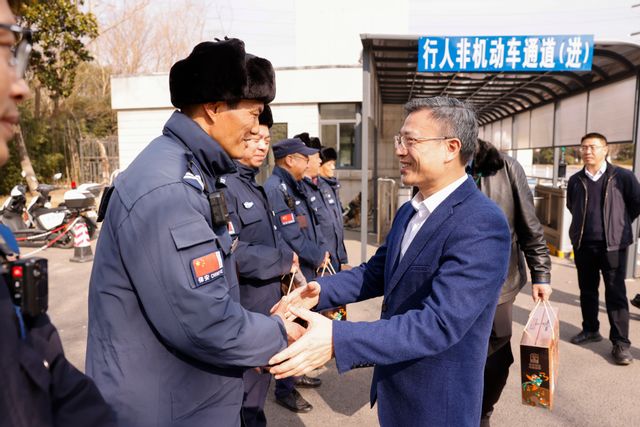 The delegation led by Wu Xiaocheng visited the Juyuan Canteen, Juyuan Dormitories 5-14, the power distribution room, the library property site, and the North Gate guard room to greet frontline staff. They learned in detail about the progress of holiday services including catering support, dormitory management, power supply, environmental sanitation, and campus security. They also carefully inquired about the work arrangements and living conditions of the staff, extended sincere festive greetings and best wishes for the Spring Festival to all personnel on duty during the holiday, and expressed heartfelt gratitude to everyone for their dedicated efforts in safeguarding campus safety and stability and ensuring a peaceful festival for teachers and students remaining on campus.
