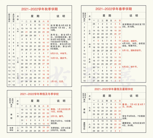 Southeast University 2021-2022 First Semester Academic Calendar