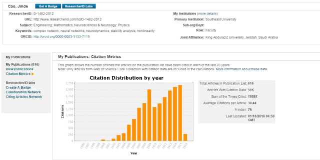 On January 15th, Thomson Reuters released “The World’s Most Influential Scientific Minds 2015”, highlighting the highly cited researchers around the world in the year 2015. Professor Cao Jinde from Department of Mathematics, SEU is selected as “Highly Cited Researchers 2015” in the fields of Mathematics, Engineering and Computer Science with 616 articles in publication list and 18081 times cited. Professor Yu Wenwu, who is also from Department of Mathematics, SEU is selected as “Highly Cited Researchers 2015” in the field of Engineering with 95 articles in publication list and 3760 times cited. This is the second time for both of the professors since they were selected as “Highly Cited Researchers 2014”.